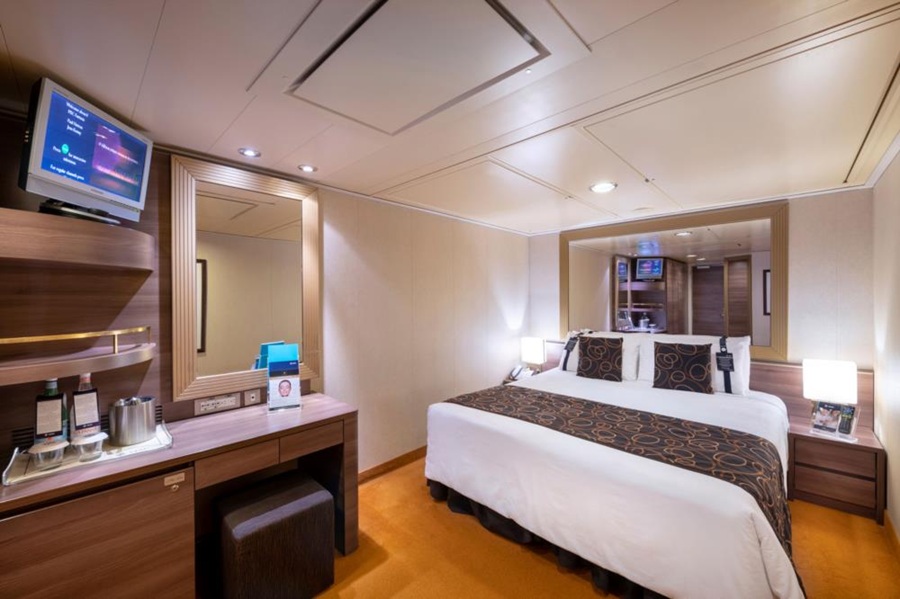 Внутренняя DBL – двухместная каюта (гарантированная), номер каюты будет известен только перед началом круиза.Площадь каюты ≈ 17 м². Максимальная вместимость: 4 человека.В каюте: две односпальные кровати (при необходимости трансформируются в двуспальную кровать), ванная комната (раковина, душ, туалет), телефон, фен, мини-бар, сейф, кондиционер, интерактивное TV, беспроводной интернет (оплачивается дополнительно), каюта без окна.
