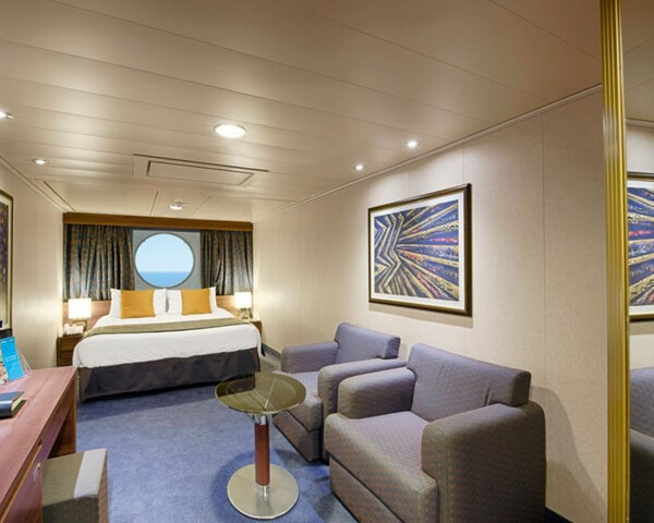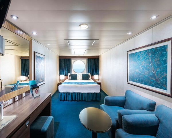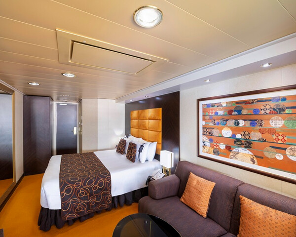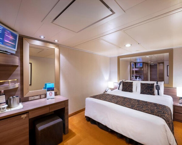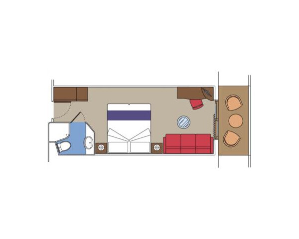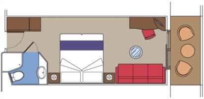 С балконом DBL – двухместная каюта (гарантированная), номер каюты будет известен только перед началом круиза. Площадь каюты ≈ 19 м². Площадь балкона ≈ 4 м². Максимальная вместимость: 4 человека.В каюте: две односпальные кровати (при необходимости трансформируются в двуспальную кровать), ванная комната (раковина, душ, туалет), двуспальный раскладной диван, телефон, фен, мини-бар, сейф, кондиционер, интерактивное TV, беспроводной интернет (оплачивается дополнительно), персональный балкон с мебелью для отдыха.