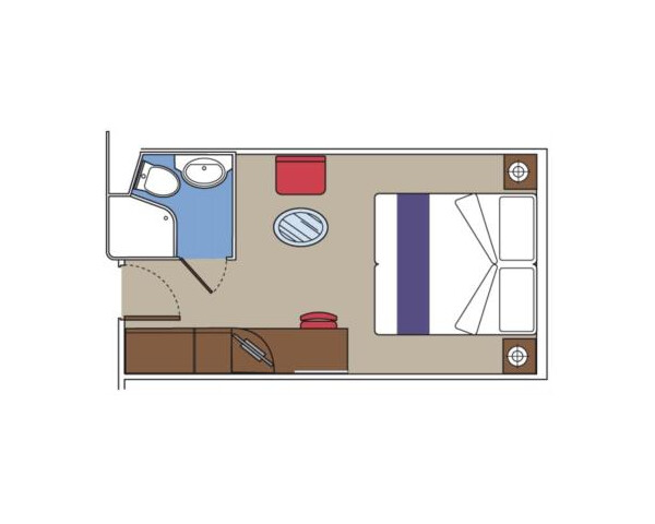 Внутренняя SNGL – одноместная каюта (гарантированная), номер каюты будет известен только перед началом круиза.Площадь каюты ≈ 17 м². Максимальная вместимость: 1 человек.В каюте: одна двуспальная кровать (при необходимости трансформируются в две односпальные), ванная комната (раковина, душ, туалет), телефон, фен, мини-бар, сейф, кондиционер, интерактивное TV, беспроводной интернет (оплачивается дополнительно), каюта без окна.
