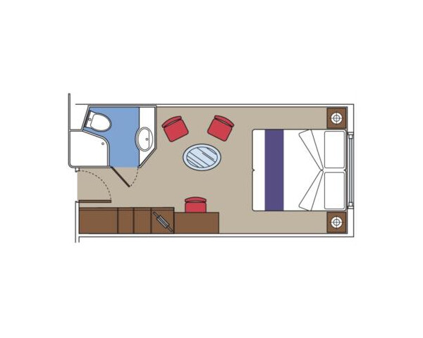 С окном DBL – двухместная каюта (гарантированная), номер каюты будет известен только перед началом круиза.Площадь каюты ≈ 18 м². Максимальная вместимость: 4 человека.В каюте: две односпальные кровати (при необходимости трансформируются в двуспальную кровать), ванная комната (раковина, душ, туалет), телефон, фен, мини-бар, сейф, кондиционер, интерактивное TV, беспроводной интернет (оплачивается дополнительно), окно (не открывается).