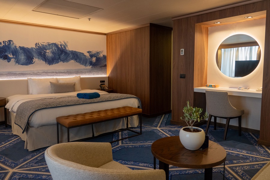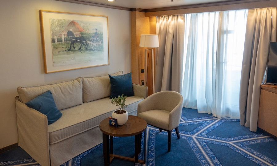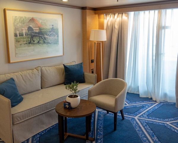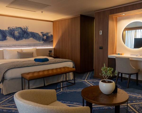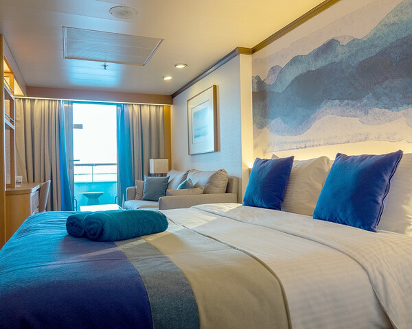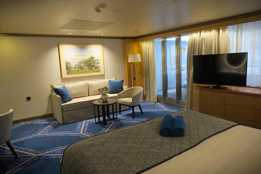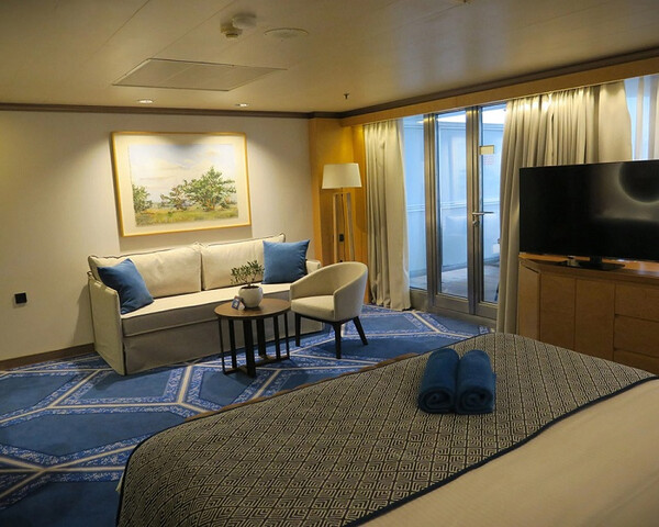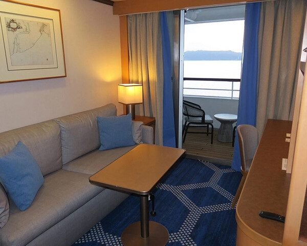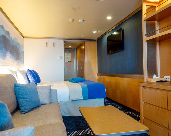 Сьют с балконом Junior Dream Suite (SJA) – двухместная каюта, расположенная на 9 палубе.Площадь каюты ≈ 21 м². Максимальная вместимость: 3 человека.В каюте: две односпальные кровати (при необходимости трансформируются в двуспальную кровать), ванная комната (раковина, ванна, туалет), диван, туалетный стол с зеркалом, кондиционер, телевизор, телефон, сейф, фен, мини-бар, персональный балкон с мебелью для отдыха.