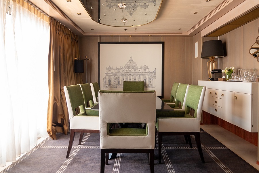 Сьют с балконом Junior Dream Suite (SJC) – двухместная каюта, расположенная на 10 палубе.Площадь каюты ≈ 21 м². Максимальная вместимость: 3 человека.В каюте: две односпальные кровати (при необходимости трансформируются в двуспальную кровать), ванная комната (раковина, ванна, туалет), диван, туалетный стол с зеркалом, кондиционер, телевизор, телефон, сейф, фен, мини-бар, персональный балкон с мебелью для отдыха.