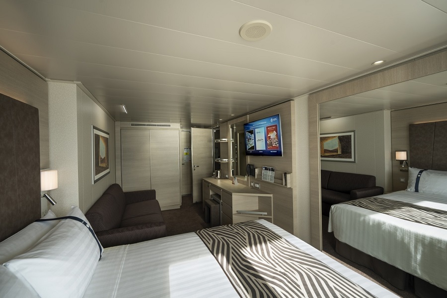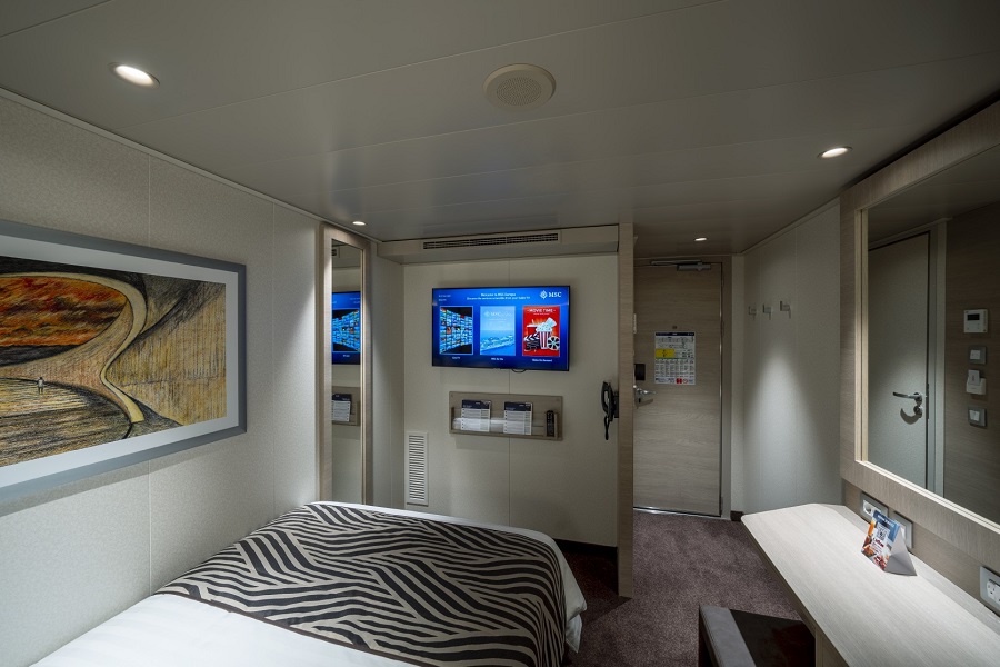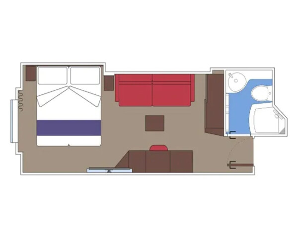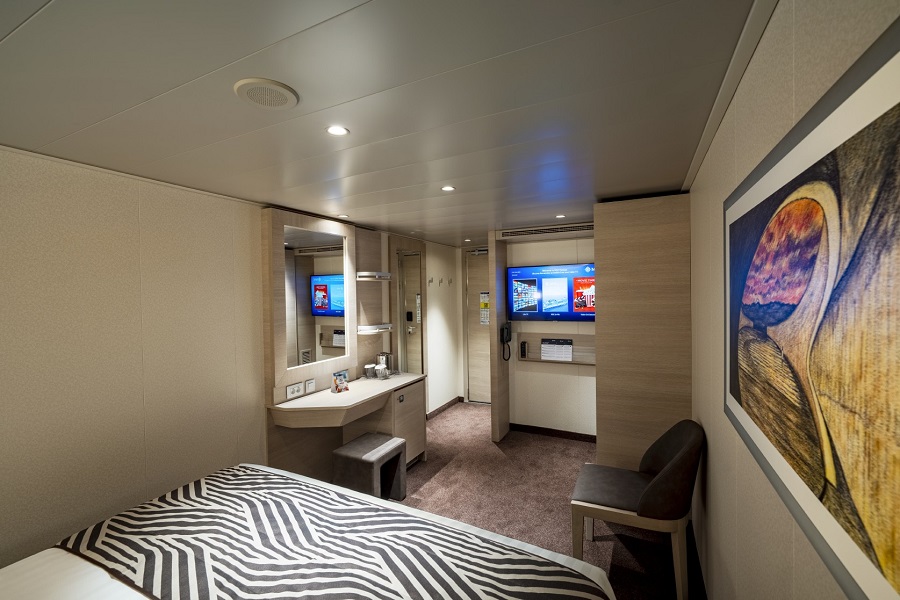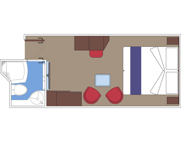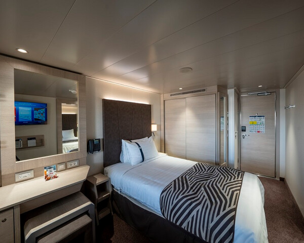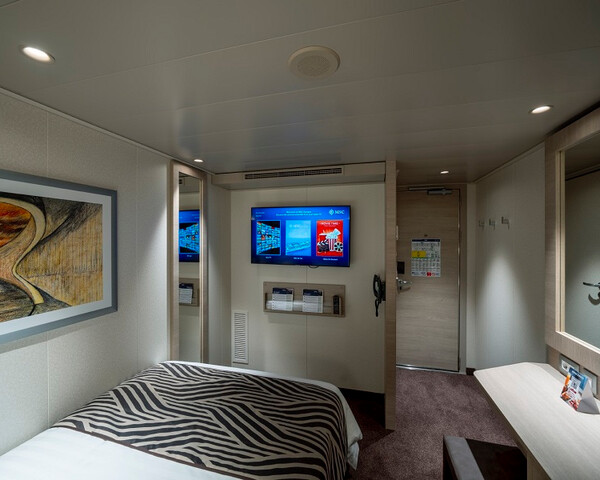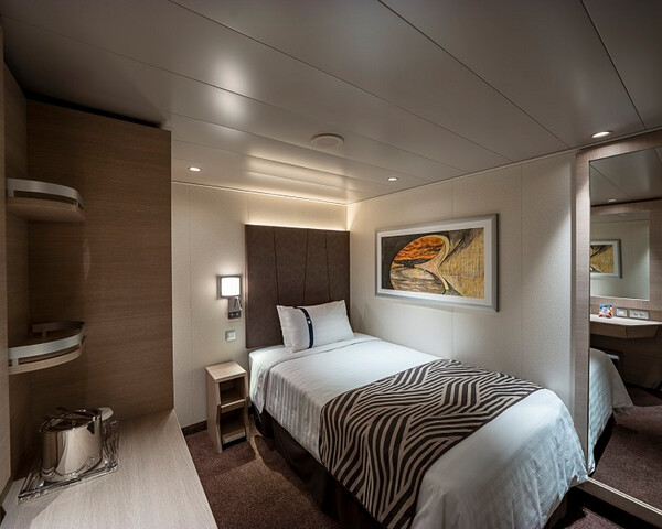 Внутренняя SNGL – одноместная каюта (гарантированная), номер каюты будет известен только перед началом круиза.Максимальная вместимость: 1 человек.В каюте: одна двуспальная кровать (при необходимости трансформируются в две односпальные), ванная комната (раковина, душ, туалет), телефон, фен, мини-бар, сейф, кондиционер, интерактивное TV, беспроводной интернет (оплачивается дополнительно), каюта без окна.