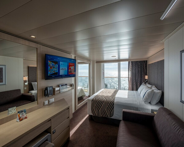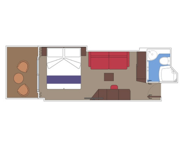 С балконом SNGL – одноместная каюта (гарантированная), номер каюты будет известен только перед началом круиза.Максимальная вместимость: 1 человек.В каюте: одна двуспальная кровать (при необходимости трансформируются в две односпальные), ванная комната (раковина, душ, туалет), телефон, фен, мини-бар, сейф, кондиционер, интерактивное TV, беспроводной интернет (оплачивается дополнительно), стеклянная балконная дверь-окно, персональный балкон с мебелью для отдыха.