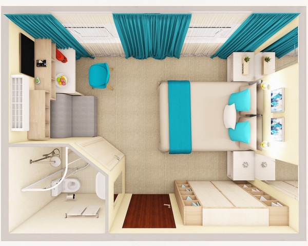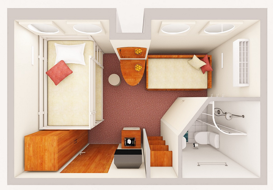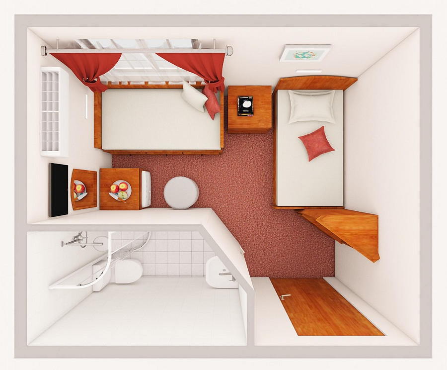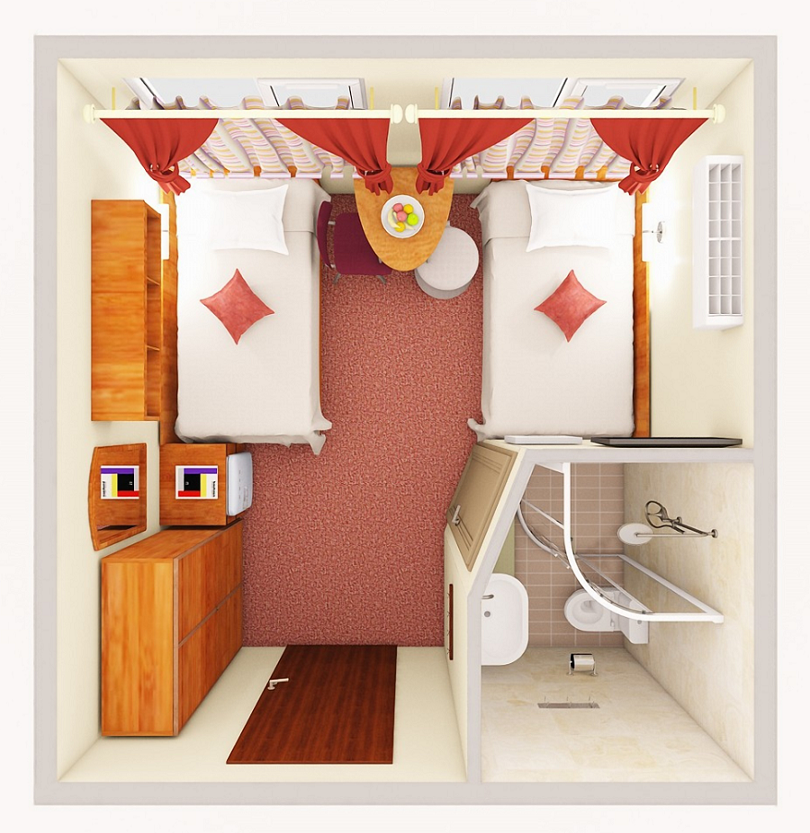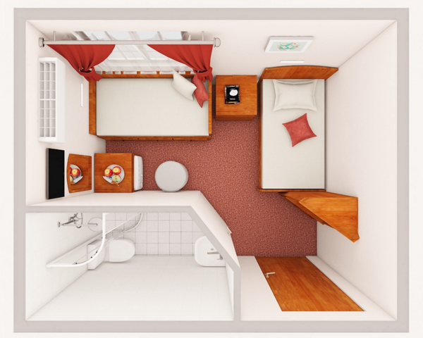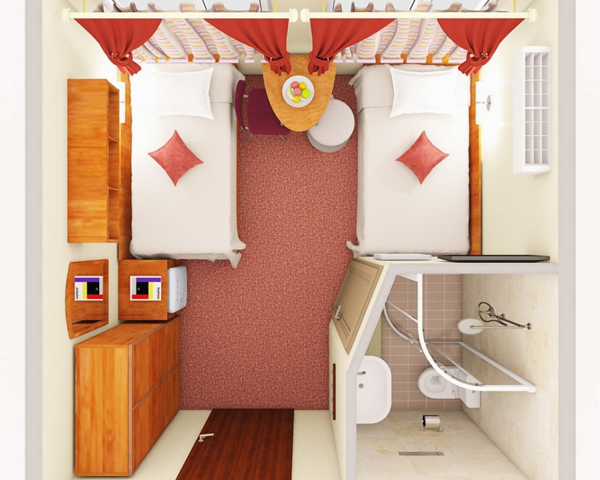 К категории Полулюкс относятся каюты: 317, 318. Двухместная каюта увеличенной площади со всеми удобствами, расположенная на средней палубе. Площадь каюты ≈ 15,8 м².