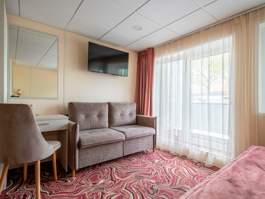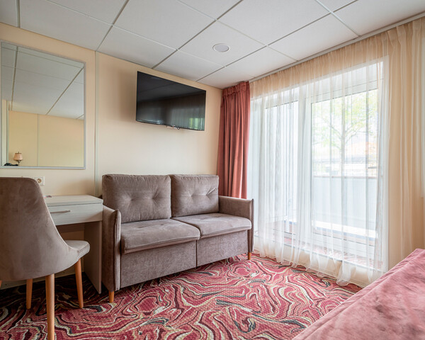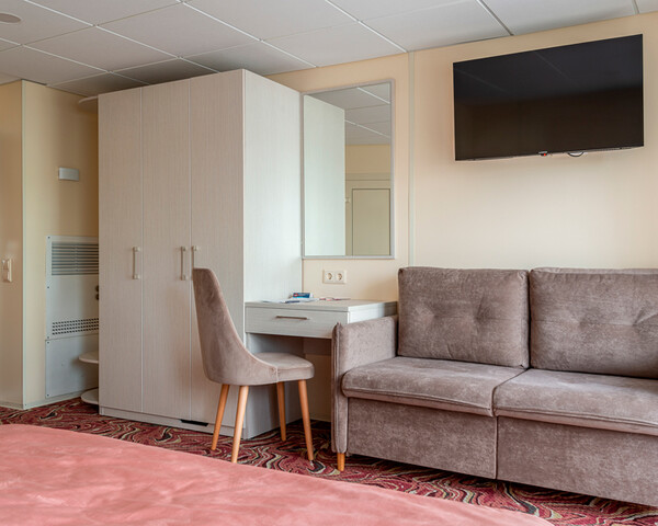 Возможно размещение третьего и четвертого человека на дополнительных местах – двуспальный диван.