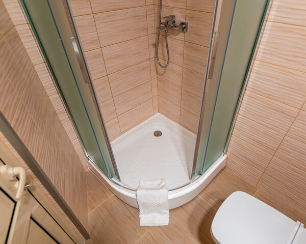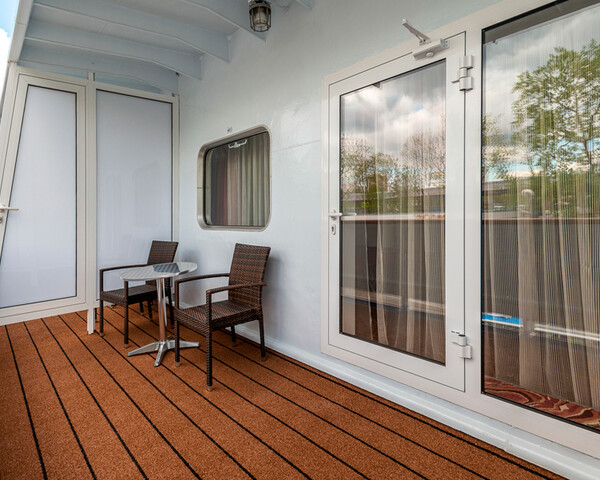 К категории Полулюкс с балконом А относятся каюты: 408, 410, 412, 413, 414, 419, 420, 422. Двухместная каюта увеличенной площади со всеми удобствами, расположенная на шлюпочной палубе. Площадь каюты от 26,4 до 28,7 м² (включая балкон от 7 до 9 м²).
