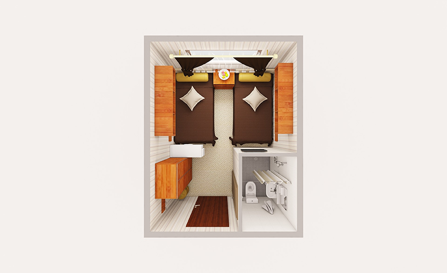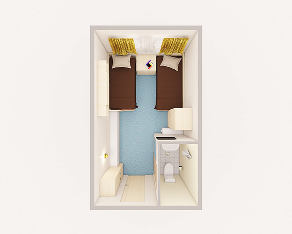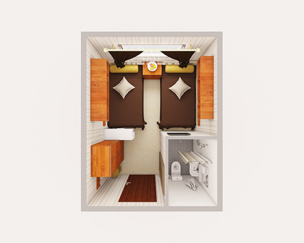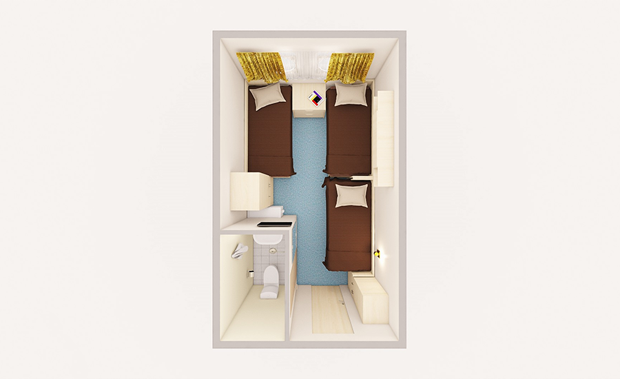 В каютах 404, 405, 420 два дополнительных спальных места – двуспальный диван.