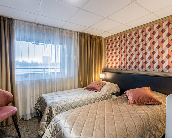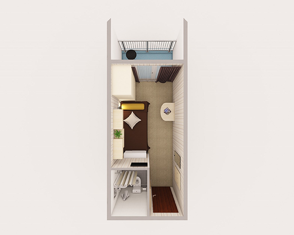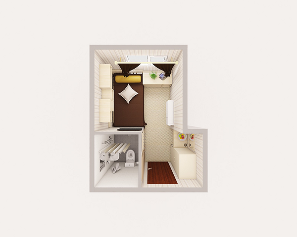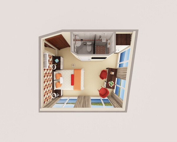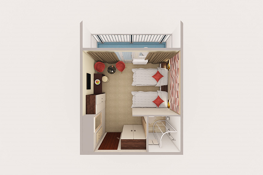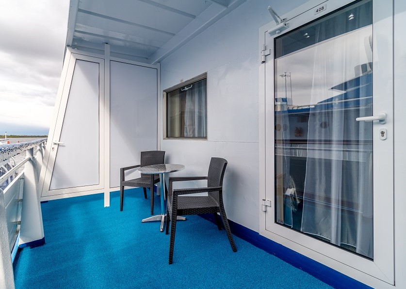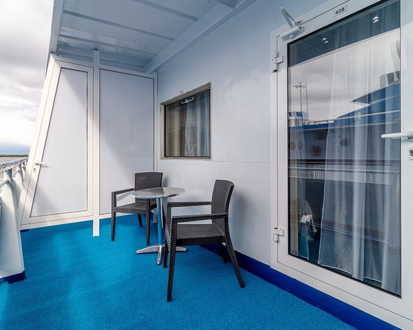 Двухместная каюта увеличенной площади с возможностью размещения до 4-х человек со всеми удобствами, расположенная на шлюпочной палубе. Площадь каюты от 23,3 до 34,9 м² (включая балкон от 5,6 до 7,8 м²).