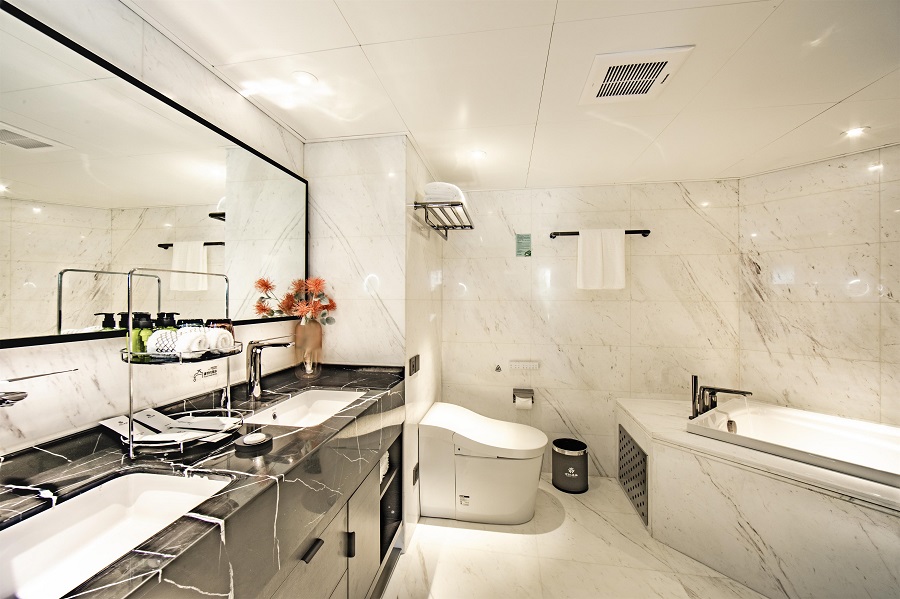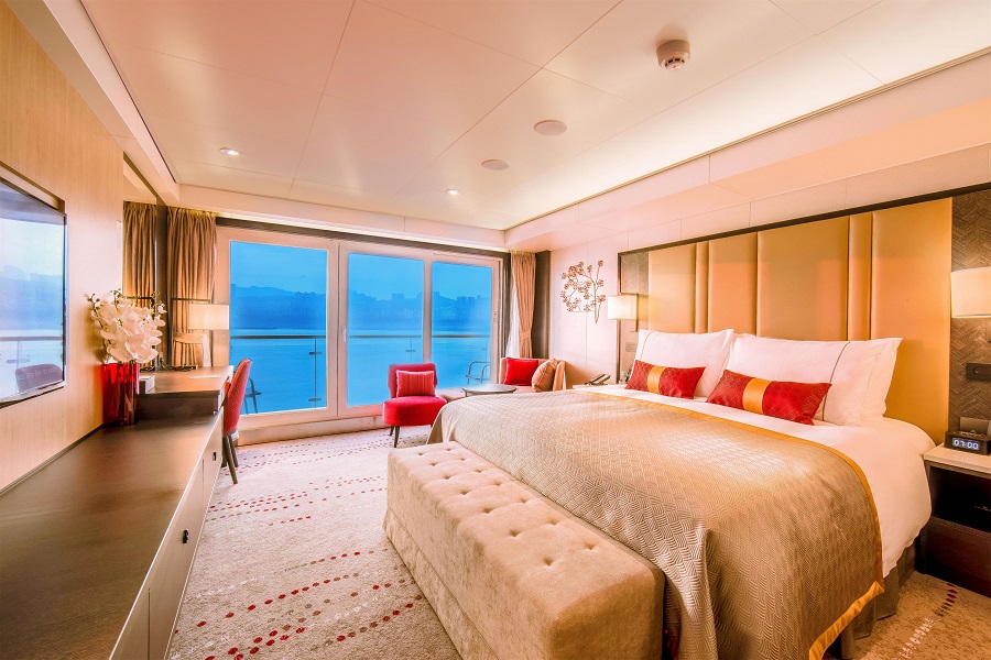 В каюте: две односпальные кровати, ванная комната (раковина, душевая кабина, туалет), система кондиционирования воздуха, спутниковое телевидение, питьевая вода (ежедневно), чайник и чайный набор, туалетные принадлежности, стеклянная балконная дверь-окно, персональный балкон с мебелью для отдыха.