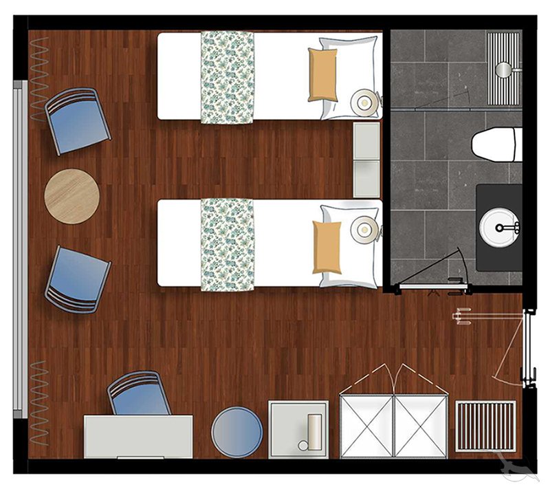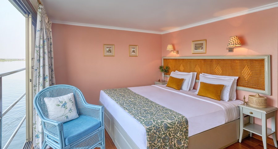 К категории DBL (upper deck) относятся каюты 1-14.Двухместная каюта, расположенная на верхней палубе.Площадь каюты ≈ 19 м².В каюте: двуспальная кровать (при необходимости трансформируется в две односпальные кровати), ванная комната (раковина, душ, туалет), шкаф для одежды, чайная станция, ежедневное пополнение воды, индивидуальный климат-контроль, туалетные принадлежности (Kama Ayurveda), фен, банные халаты, тапочки, сейф, телефон внутренней связи, мини-бар (оплачивается дополнительно), стеклянная балконная дверь, французский балкон.