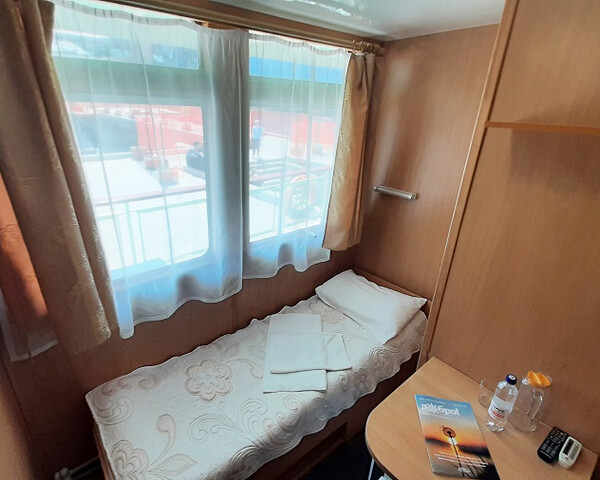 К категории 1 относится каюта: 205б.Одноместная каюта с частичными удобствами, расположенная на средней палубе.Площадь каюты ≈ 7 м².В каюте: односпальная кровать, раковина с холодной и горячей водой, шкаф для одежды, стол, кондиционирование, мини-холодильник, телевизор, радио, розетка 220V, обзорное окно.
