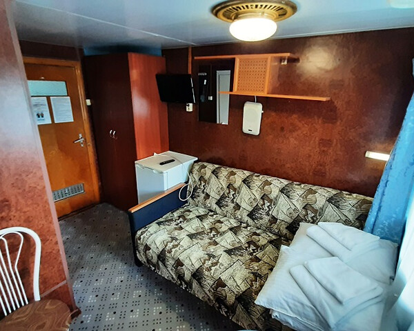 В каютах 207, 210 – раскладной двуспальный диван и односпальный диван.