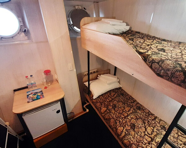 В каютах 007, 008 – двуспальный диван и двухъярусная кровать.