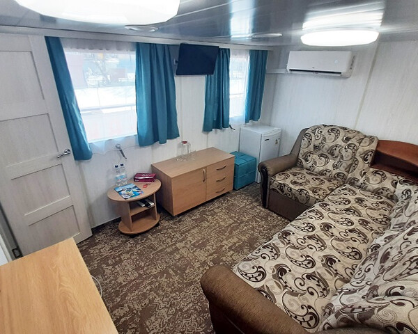 Возможно размещение третьего человека на дополнительном спальном месте – раскладной диван.