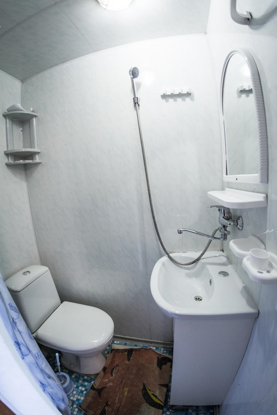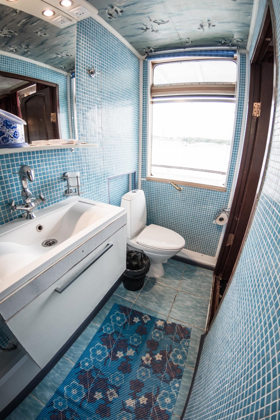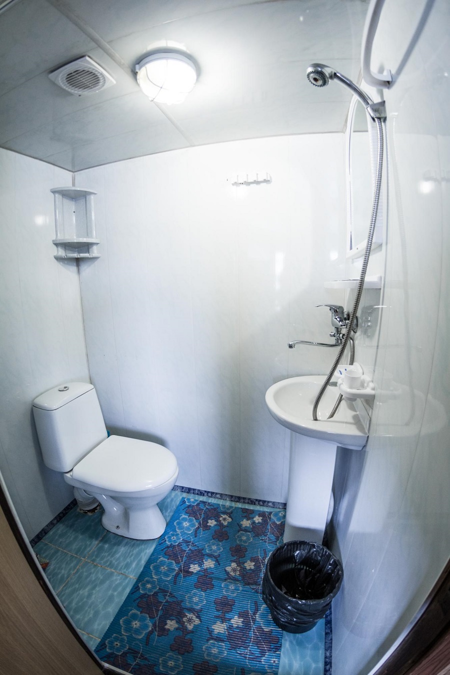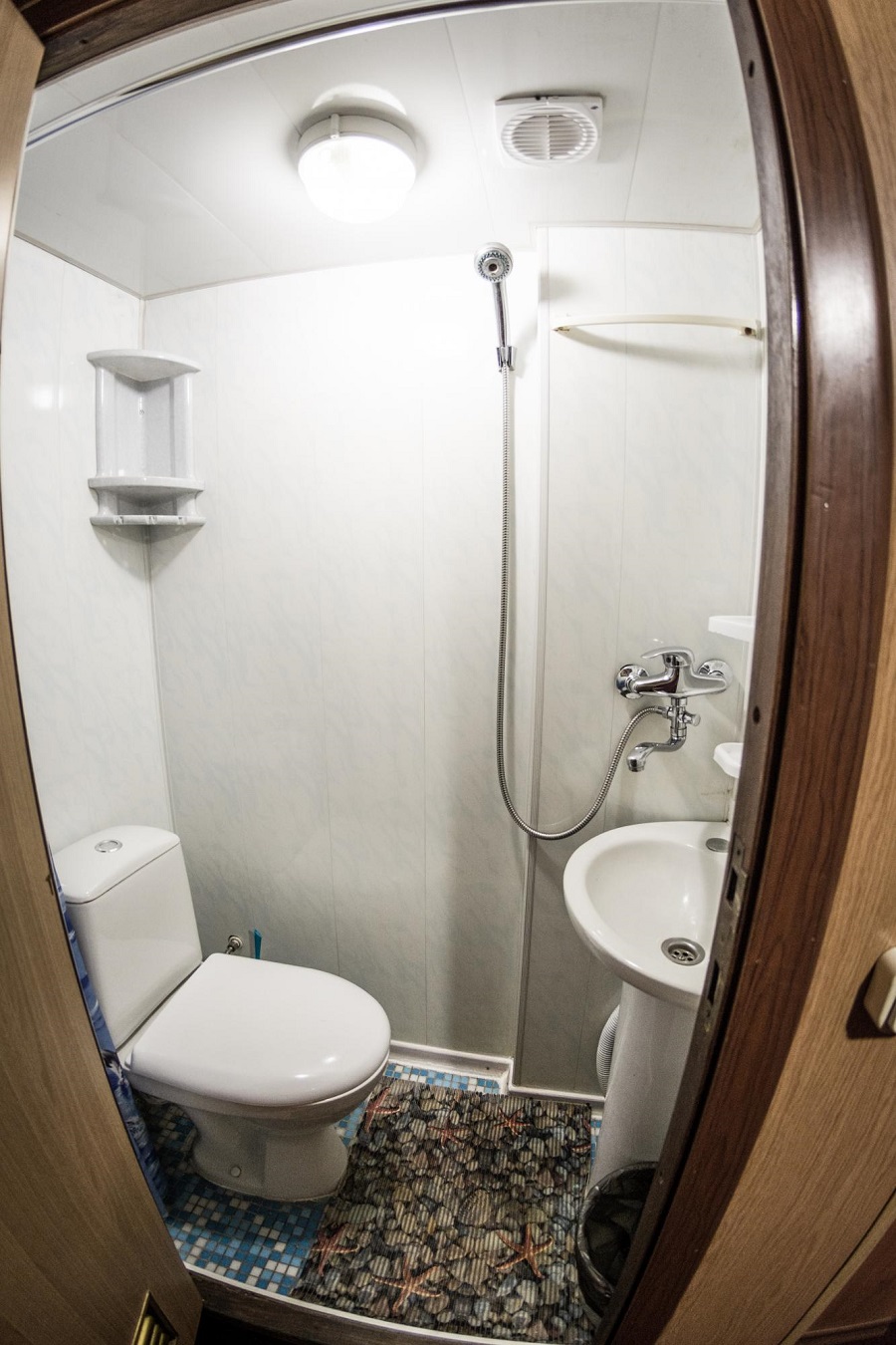В каюте: двуспальная кровать, ванная комната (раковина, душ, туалет), кондиционер, шкаф для одежды, телевизор, холодильник, радио, два обзорных окна, розетка на 220V.
