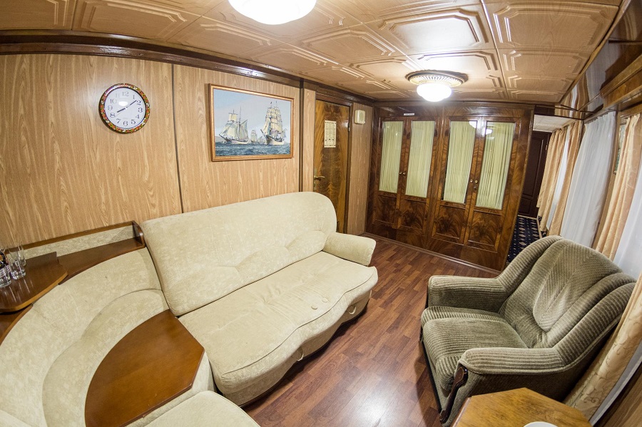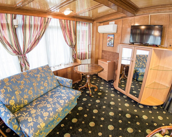 К категории Президентский люкс «Илья Муромец» относится каюта: 301.Двухкомнатная двухместная каюта со всеми удобствами, расположенная на средней палубе.