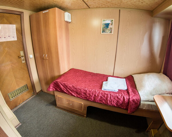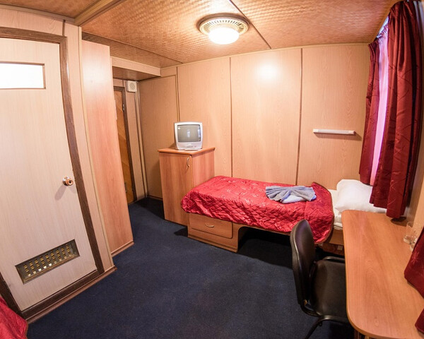 К категории А1 (II) относятся каюты: 325, 340, 341.Одноместная каюта со всеми удобствами, расположенная на средней палубе.В каюте: односпальная кровать, шкаф для одежды, ванная комната (раковина, душ, туалет), общая система вентиляции, телевизор, холодильник, радио, розетка на 220 V, обзорное окно.