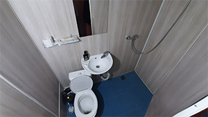 К категории Омега фронт относятся каюты: 303–308, 310–313, 315, 317, 319–330.Двухъярусная двухместная каюта со всеми удобствами, расположенная на средней палубе.Площадь каюты ≈ 7 м².