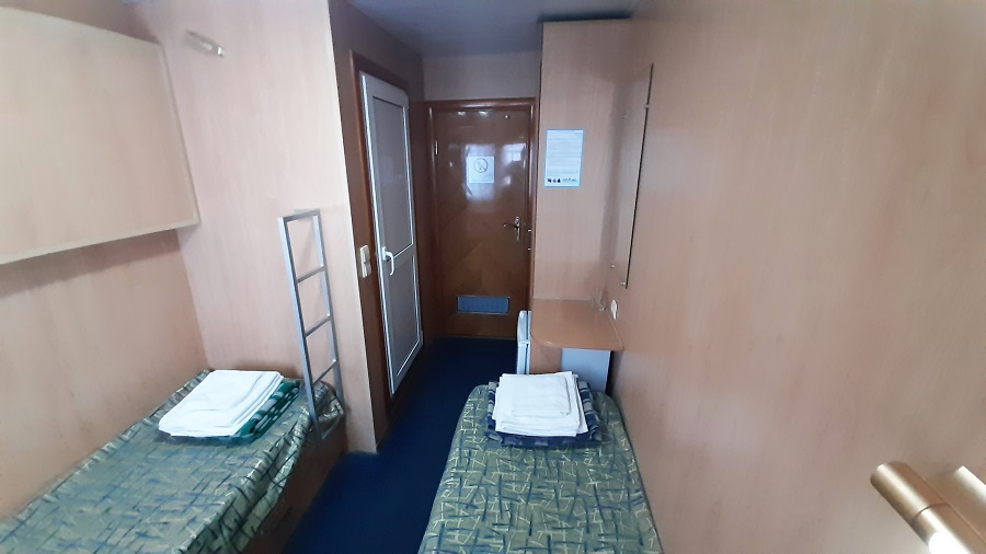 К категории Омега относятся каюты: 335, 338–349, 351.Двухъярусная двухместная каюта со всеми удобствами, расположенная на средней палубе.Площадь каюты ≈ 7 м².