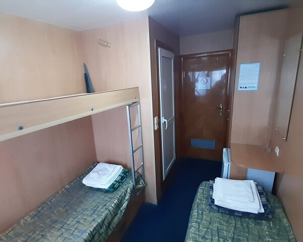 К категории Бета (2+1) относятся каюты: 111–114.Двухместная каюта со всеми удобствами, расположенная на нижней палубе.Площадь каюты ≈ 10,1 м².