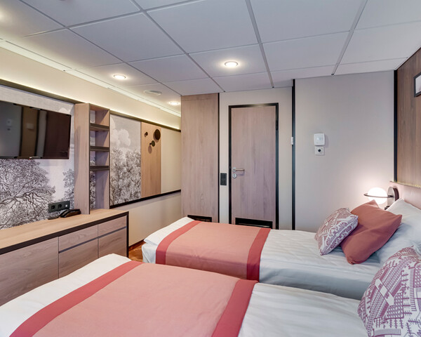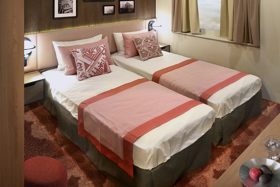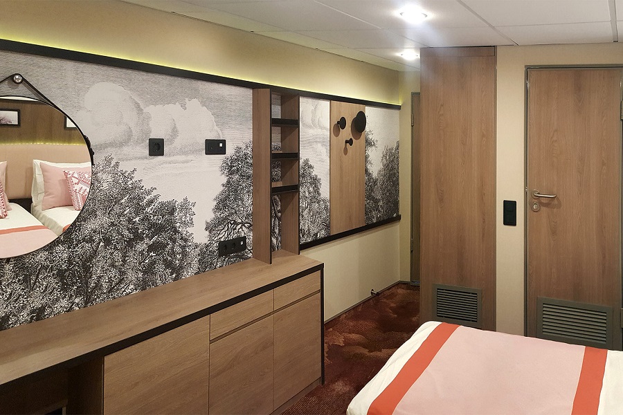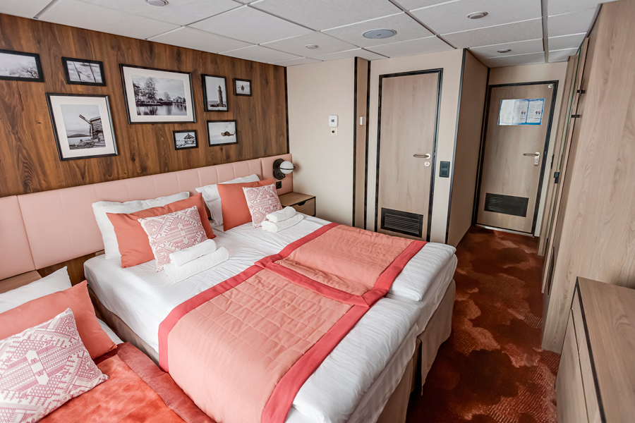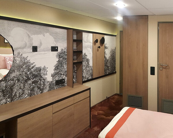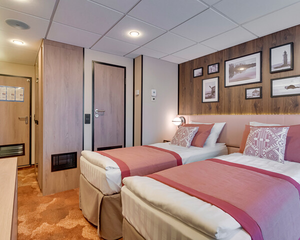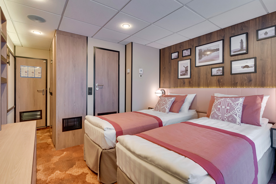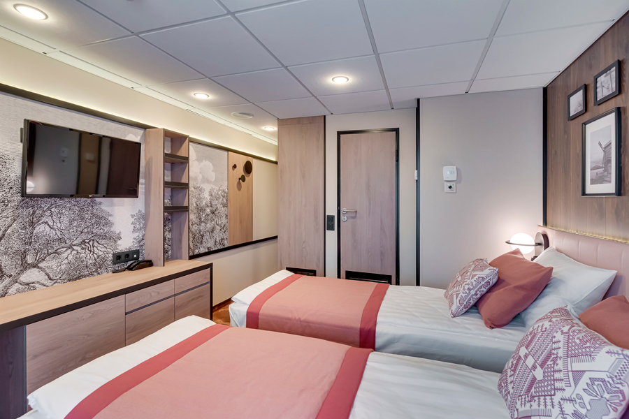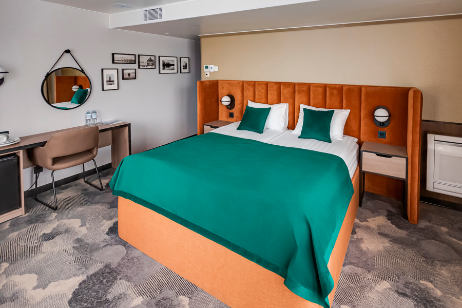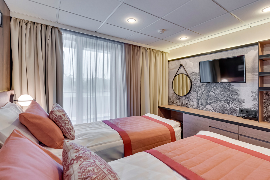 К категории Комфорт премиум (главная палуба) относятся каюты: 201–224.Двухместная каюта со всеми удобствами, расположенная на главной палубе. Площадь каюты ≈ 15 м².