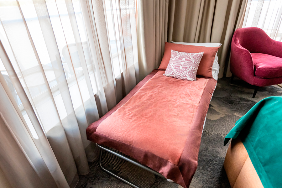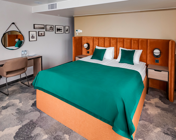 Возможно размещение третьего человека (ребенок до 14 лет включительно) на дополнительном спальном месте – еврораскладушка.