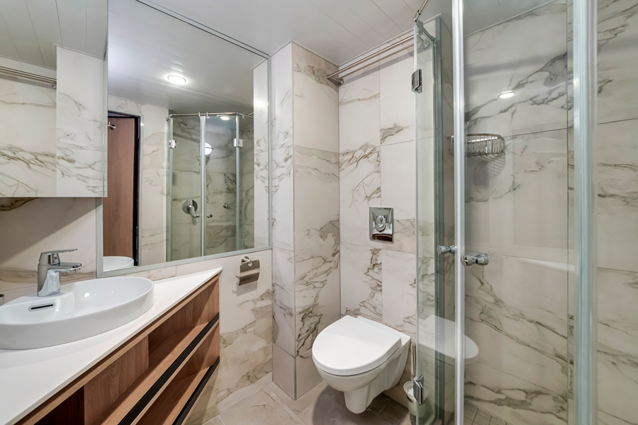 К категории Комфорт премиум (средняя палуба) относятся каюты: 301–304.Двухместная каюта со всеми удобствами, расположенная на средней палубе. Площадь каюты ≈ 15 м².
