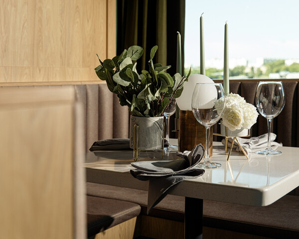 Ужин – заказная система питания (выбор блюд со 2-го дня круиза). Включённые напитки (без ограничения): вода, чай, кофе. На выбор: вино красное / белое / игристое (1 бокал, 125 мл) / водка (1 рюмка, 50 мл) / пиво (1 бокал, 300 мл) / домашний морс (1 бокал, 200 мл). По запросу гостя: кисломолочный напиток (1 стакан, 200 мл).