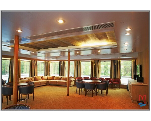 К услугам туристов: (завтрак: шведский стол, обед: выборное меню из 2-х первых блюд, 3-х вторых блюд ( одно из них вегетарианское) и выбор одного из двух десертов, ужин: выборное меню из 2-х блюд и выбор одного из двух десертов), детские стульчики в ресторане, музыкальный салон, кинозал, медпункт, гладильная комната, детская комната, музыкальные и развлекательные программы, телевизоры в баре и салоне, спутниковые телевизионные и внутрисудовые каналы, библиотека, открытые бортовые веранды.
