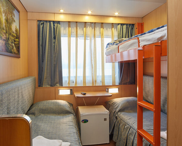 В трехместных каютах 2-Б категории при двухместном размещении стоимость каждого места увеличивается на 20%.
