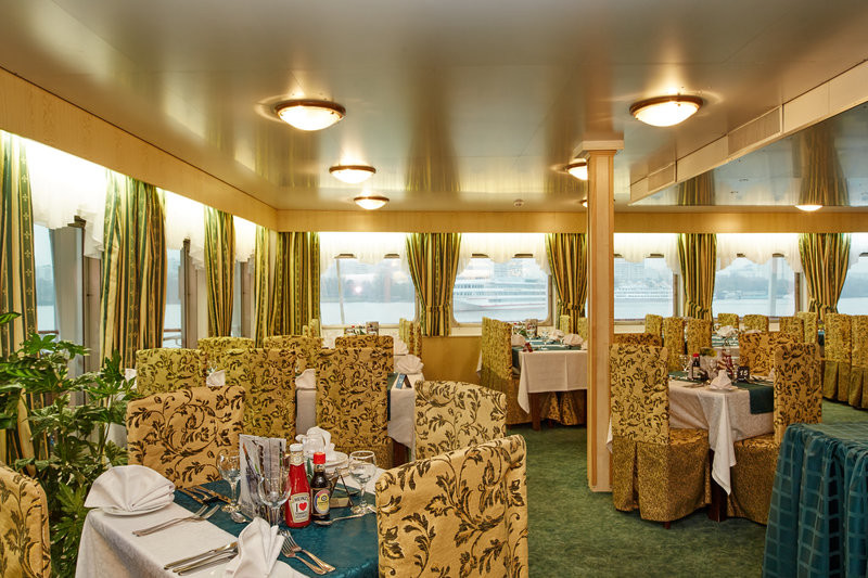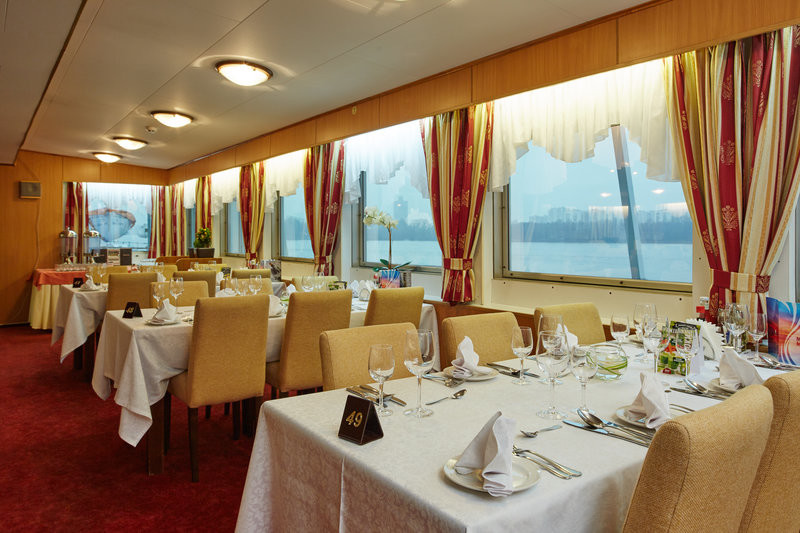 На теплоходе к услугам путешественников два ресторана — «Старая Москва» на средней палубе и «Арбат» на шлюпочной. В ресторане «Арбат» размещаются гости из кают «люкс» и «полулюкс».