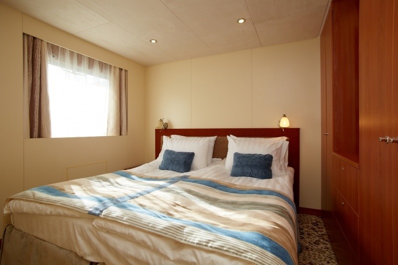Для размещения туристов предусмотрены 1-, 2- и 3-х местные каюты на шлюпочной, средней, главной и нижней палубах. Имеются каюты повышенной комфортности - "Люкс" и "Полулюкс".