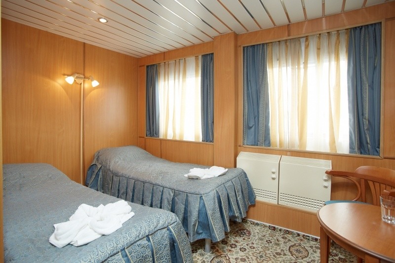 В каждой каюте: душ, туалет, кондиционер, холодильник, шкаф, телевизор, фен, радиоточка, электрическая розетка 220 В, внутренняя телефонная связь, ROOM-сервис.