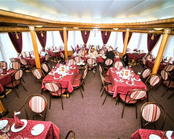 Для комфортного отдыха с детьми на борту проходит развлекательная программа. Также на теплоходе есть детское меню и игровая комната с аниматорами.