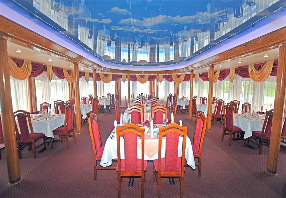 Трехразовое питание организовано в двух ресторанах. В баре большой выбор закусок, алкогольных и безалкогольных напитков. В круизах длительностью более 6-ти дней предусмотрено праздничное мероприятие «Ужин с капитаном».