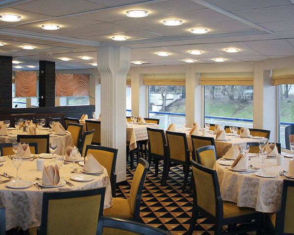 Ужин – заказная система питания (выбор блюд со 2-го дня круиза). Включённые напитки (без ограничения): вода, чай, кофе. На выбор: вино красное / белое / игристое (1 бокал, 125 мл) / водка (1 рюмка, 50 мл) / пиво (1 бокал, 300 мл) / домашний морс (1 бокал, 200 мл). По запросу гостя: кисломолочный напиток (1 стакан, 200 мл).
