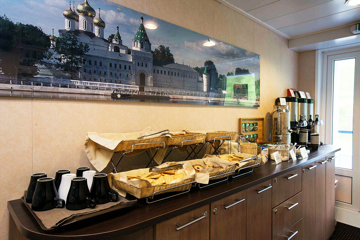 Обед – заказная система питания (выбор блюд со 2-го дня круиза). Включённые напитки (без ограничения): вода, чай, кофе, морс.