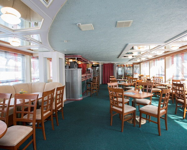 Обед — заказная система питания (выбор блюд со 2-го дня круиза), фиксированная рассадка. Включённые напитки (без ограничения): вода, чай, кофе, морс;